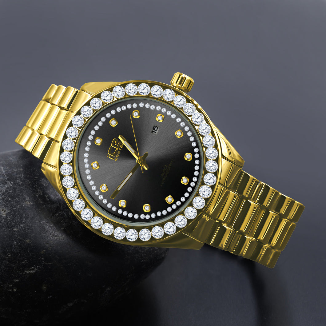 DYNASTY watch is a true persona of style. The following accessory replicates this statement perfectly with its outlandish archaic design. The intricate gold hour markers in its bezel along side with triple sub dials, and a classic black leather band, rugs a balance of both technical functionality and elevated style. With such versatile style, it is sure to hang on tight in the real world.