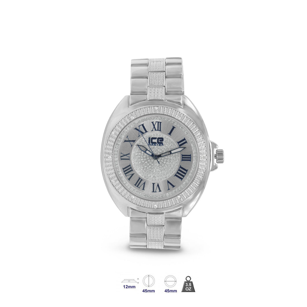 Ice Master Branded Bling Watch with CZ, Solid Alloy Construction and superior durability, Japan Movement, Japanese battery, 100% adjustable links and Stainless Steel Backcover with Splash Resistant, Case thickness approx. 11-13mm and Case diameter approx. 41-45 mm. Polybag Packaging.