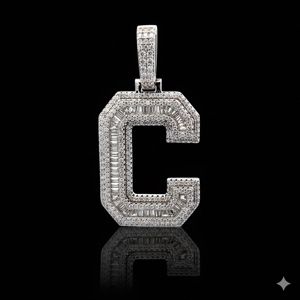 999781 | 925 Moissanite, Initial C, Rhodium Plating, Pendant