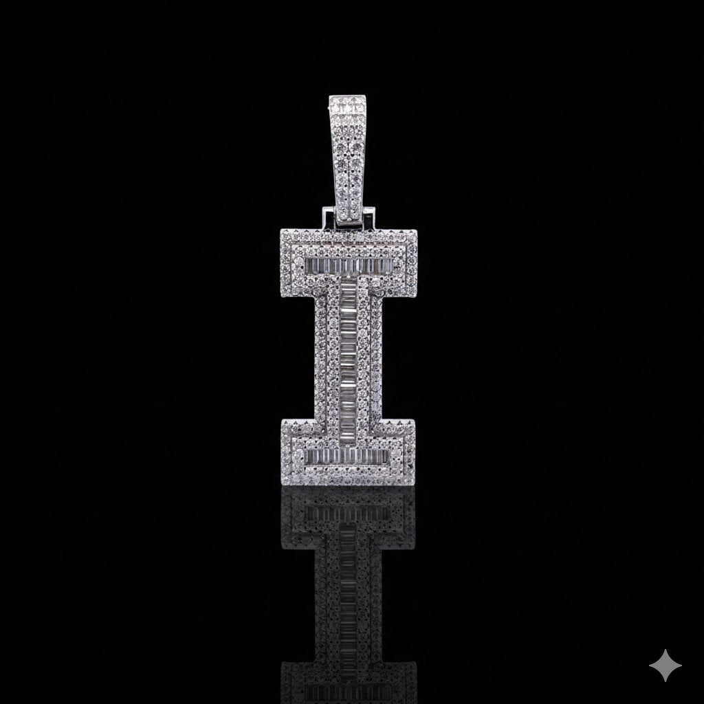999841 | 925 Moissanite, Initial I, Rhodium Plating, Pendant