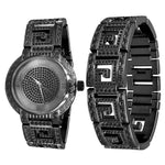PALATIAL enjoys its own reputation boasting a greek key pattern on the entire watch, dial and bracelet studded with rhinestone crystals elevating the watch to a glamorous status. Enjoy with confidence the timepiece and its accompanying bracelet.