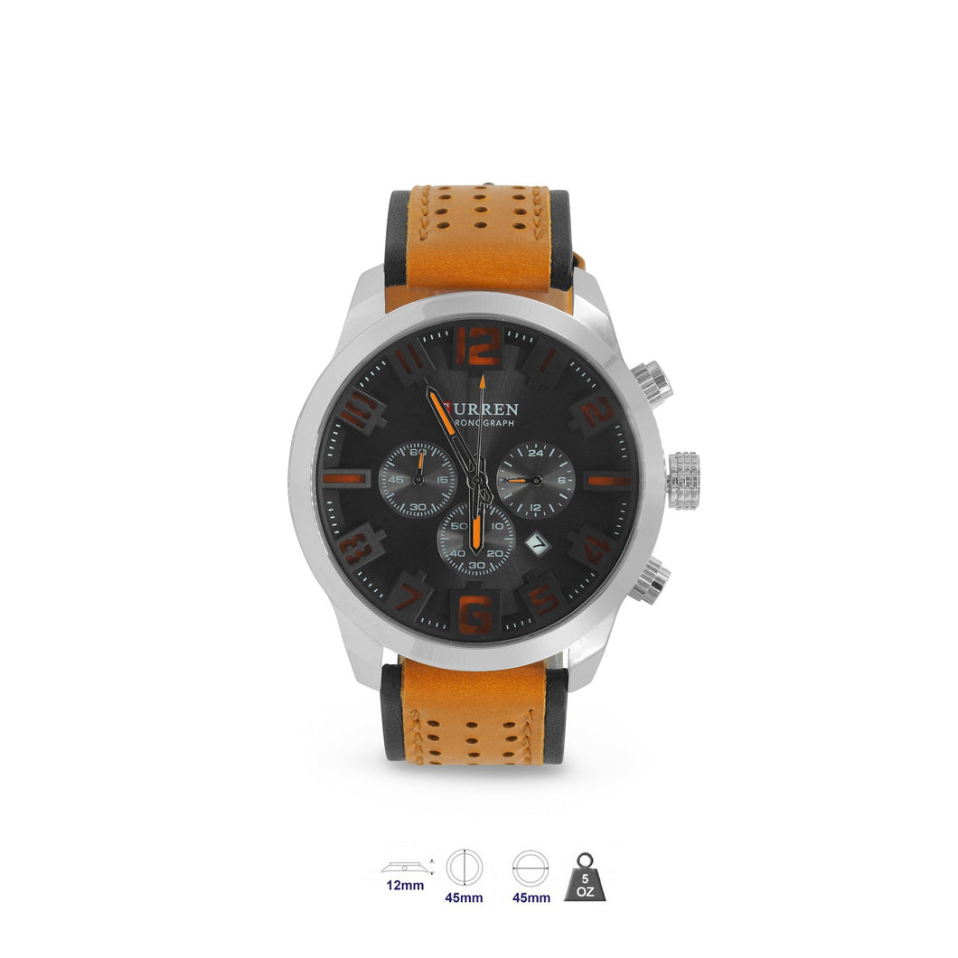 Curren Branded Classic Leather band Watch with Japan Movement, Japanese Movement, several designs with date movement, Water Resistant upto 3 ATM, Solid Alloy Construction and Designer Inspired styles. Over 200 designs and colors to choose from