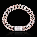 9913920 | 925 Moissanite, 7.47ctw VVS, 12mm Width, 8" Length, 3link rp + 3link rose + Rhodium Plating, Bracelet
