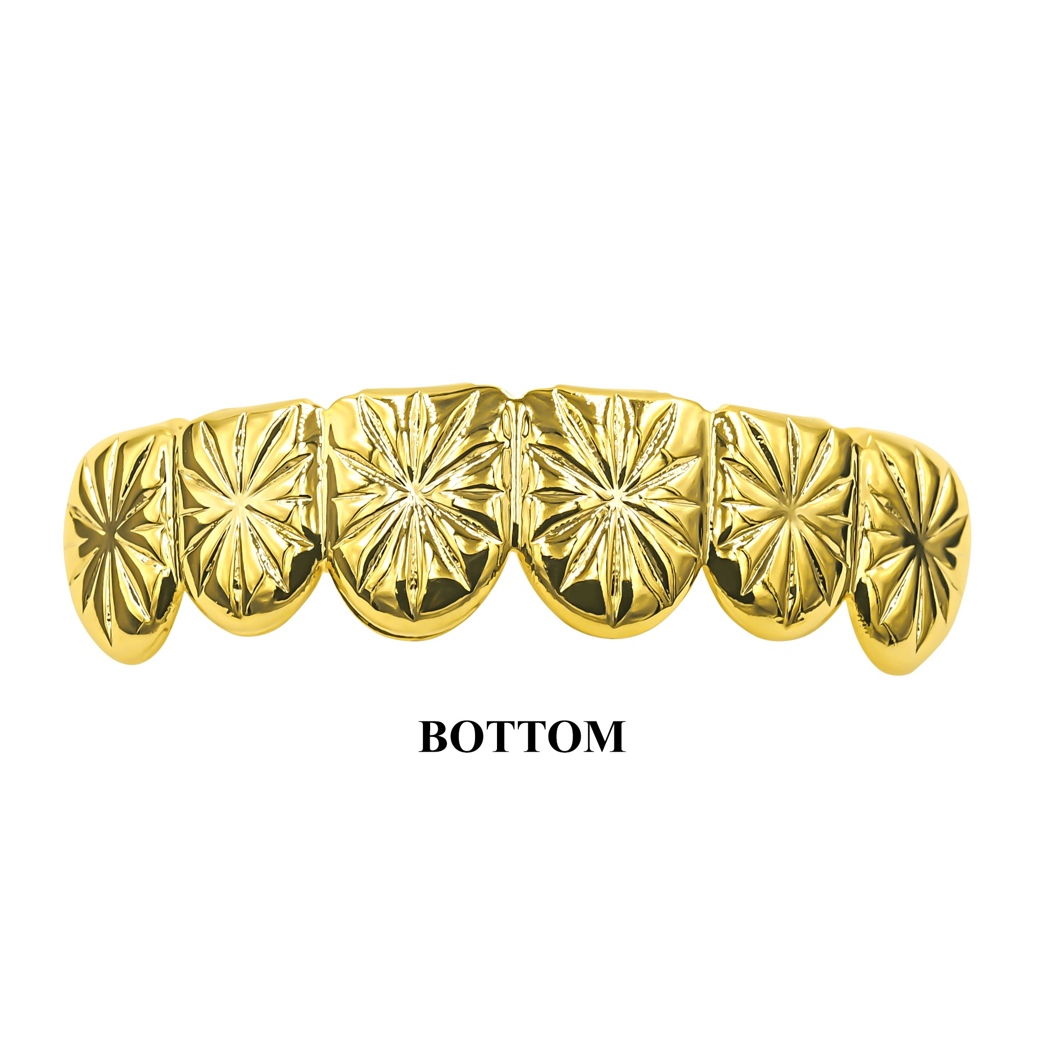INCISIVE nothing accentuates your teeth but this uniquely designed set of Grillz that are made with intricate detailing and style as their theme. Crafted with detail and cut, it is seamlessly polished in golden tint in combination with glimmering golden jewels. These Grillz undoubtedly will become symbol of sophistication and elegance in any look you flaunt.