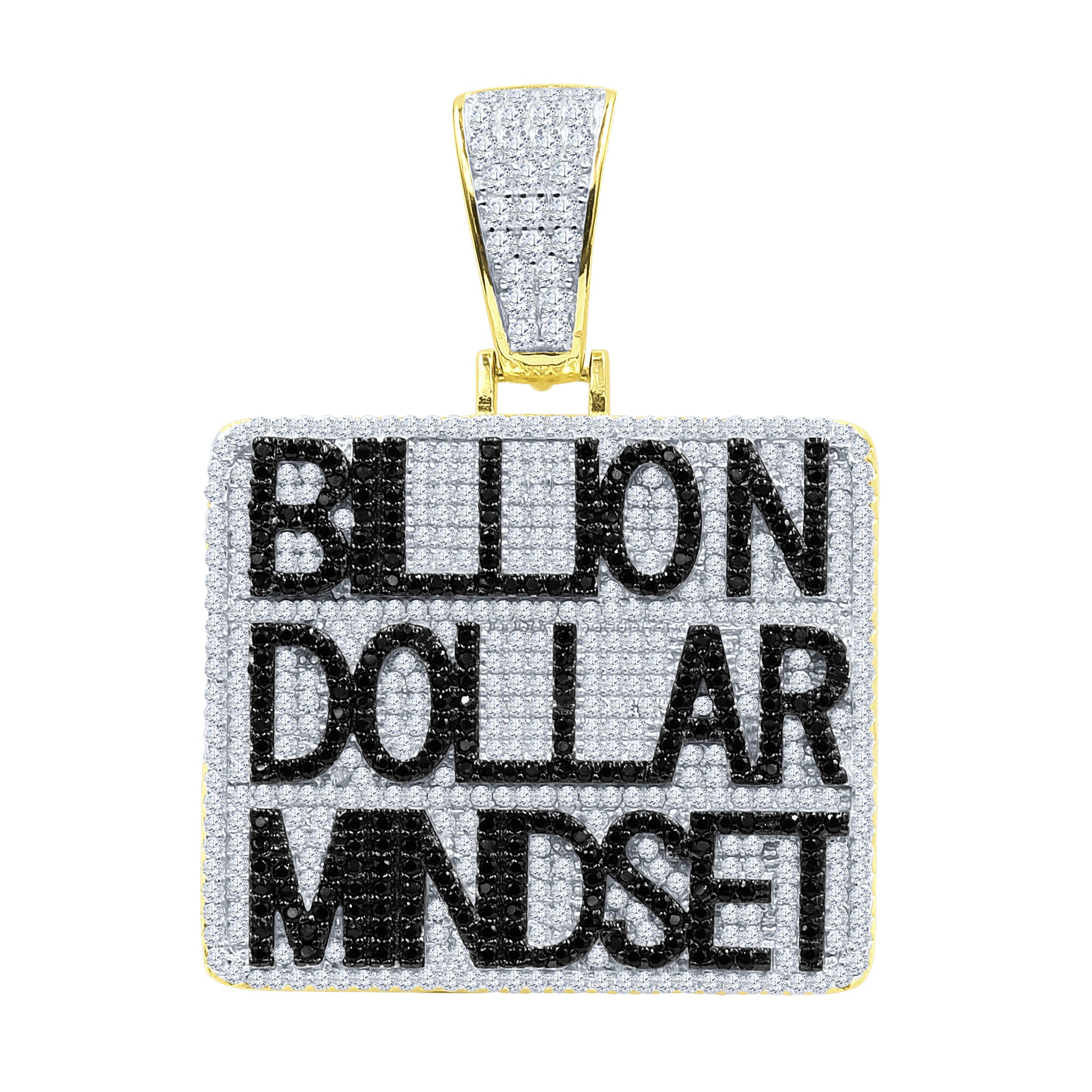 PROPERTIED mindset is what separates the best from the rest. Splurge your dollars over this discrete billion dollar mindset locket that is a delineation of affluence and prosperity. Billion dollar logo in all black caps and intricate CZ stones all over. Have yourself encircled in the crowd with this conspicuous accessory of mindset.
